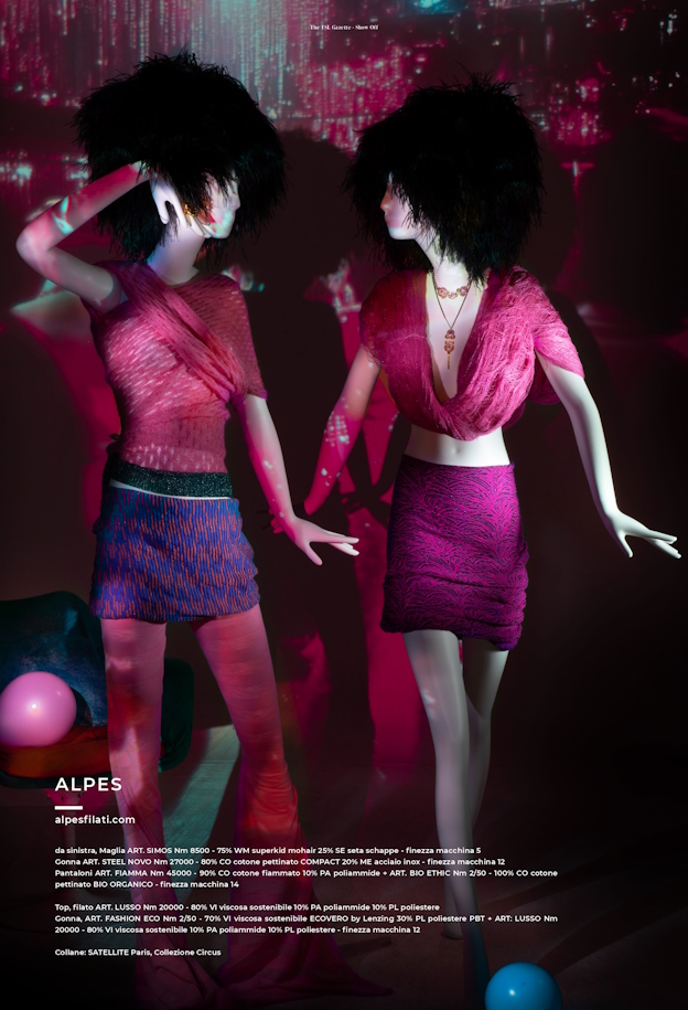 Nell'ultimo numero del textile magazine The TSL Gazette, i best sellers della collezione PE 27 di ALPES MANIFATTURA FILATI interpretano la vitalità disinvolta e anticonformista della POP – ART, in un'ambientazione DISCO ispirata al mitico Studio 54, tempio della musica dance.